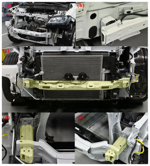 - Beyene, A.T.; Koricho, E.G.; Belingardi, G.; Martorana, B. Design and manufacturing issues in the development of lightweight solution for a vehicle frontal bumper. Procedia Eng. 2014, 88, 77–84. [Google Scholar] [CrossRef]