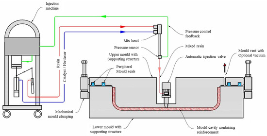 RTM molding process principle (composite-integration.co.uk/resin-transfer-molding).