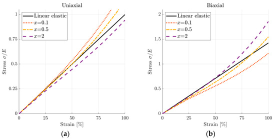 - Mooney, M. A Theory of Large Elastic Deformation. J. Appl. Phys. 1940, 11, 582–592. [Google Scholar] [CrossRef]