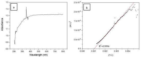 (a) Absorbance spectrum for SiC foam and (b) correlation (A/λ)1/n vs. 1/λ (n = 1/2).
