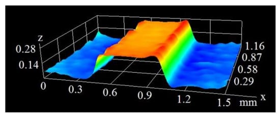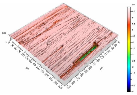 Figure 15 presents an example of smooth surface morphology. Its surface roughness is over one order of magnitude lower than that generated during laser processing and amounted to 0.171 μm (with a standard deviation of 0.198 μm). It might also contain some scratches on the surface, but they are not common and are typically shallow. The production technology consisted of mechanical milling (thus, the presence of scratches) and fine smoothing afterward for a proper surface finish.
