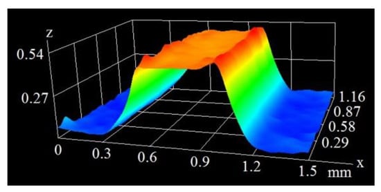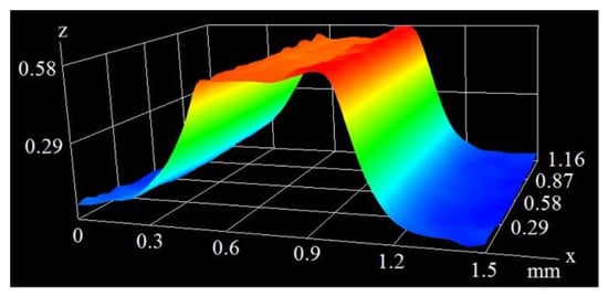 As can be seen in the above figures, the mean height of the microfins generated at the 200 mm/s scanning velocity was 0.545 mm. At a velocity of 400 mm/s, this value was much smaller and amounted to 0.237 mm.