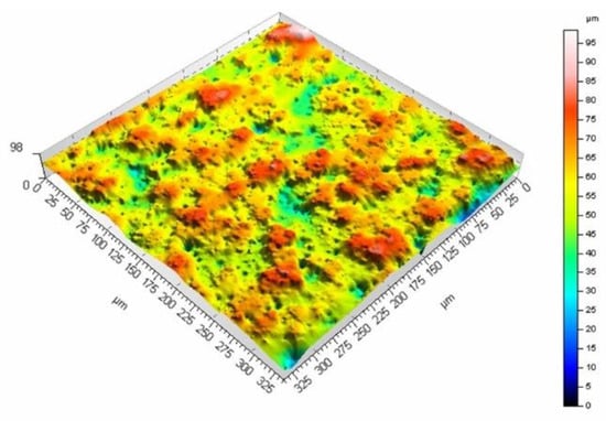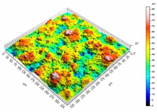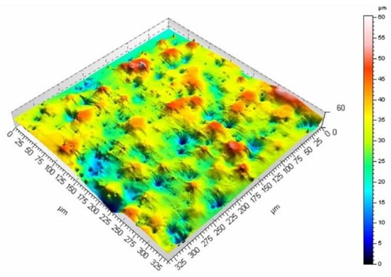 Figure 10). A smaller velocity, and thus, the longer interaction of the laser beam with the surface seems to produce deeper and higher surface elements, which leads to larger mean surface roughness values. The same phenomenon can be observed if the pulse duration is increased while maintaining the same scanning velocity.
