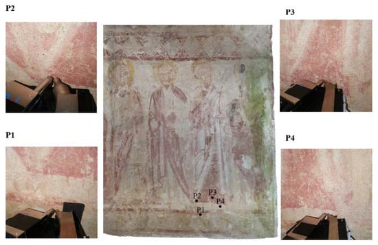 Humidity represents the first cause of alteration to the mural paintings [9]. The porous structure of the plaster is able to convey the water and the salts dissolved in it. If this equilibrium is perturbed by external factors such as the influx of visitors, the penetration of air currents, and the presence of lighting sources, alteration phenomena like saline efflorescence, growing of biofilms, and recrystallization can occur.