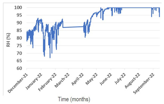 The microclimate of the Sotterra church is characterized by high relative humidity values, in keeping with the hypogea environments (Figure 7).