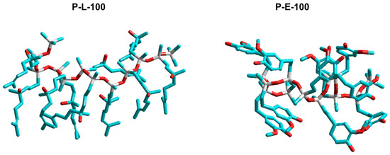 Structures of polysiloxanes functionalized with eugenol and linalool derivatives were constructed on the HyperChem platform [55]. The atomic point charges were calculated using the semi-empirical AM1 method, and geometry was optimized by the molecular mechanics method (using an MM+ force field parameter set with Polak–Ribiere energy minimization algorithms).