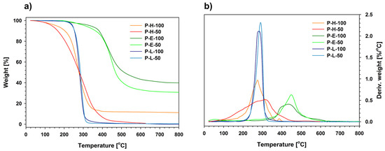 The thermal stability of the studied polymeric materials was studied with a Hi-Res TGA 2950 Thermogravimetric Analyzer (TA Instruments, New Castle, DE, USA) in nitrogen atmosphere (heating rate 10 °C/min, resolution 3, sensitivity 3).
