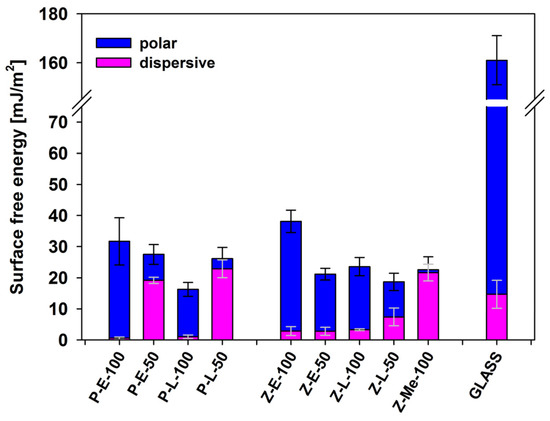Uncoated, clean glass was used as a control sample. It was not possible to prepare thin layers of P-H-100 and P-H-50 on glass substrates due to their low density (0.9–1.1 g/mL).