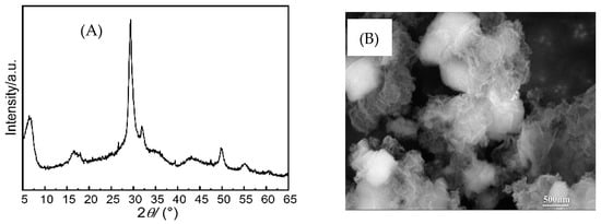 Properties of synthesized C-S-H seeds: (A) XRD pattern and (B) SEM picture.