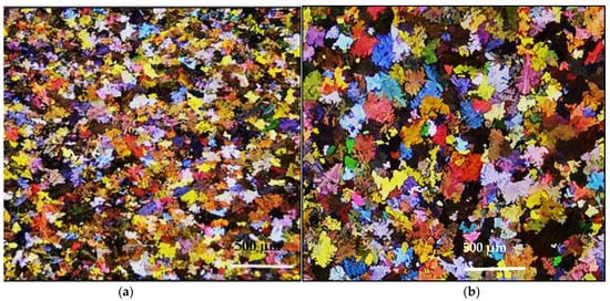 Macrostructure of grain size distribution in: (a) alloy A and (b) alloy D in the as-cast condition.