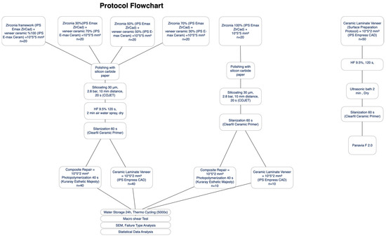 Experimental flowchart presenting the distribution of the tested groups according to testing method, substrate, and procedural sequences of the experiment.