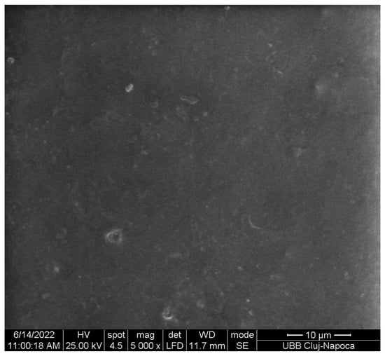 The water contact angle was determined using a Drop Shape Analyzer, DSA25 (Hamburg, Germany), at room temperature. A drop of 20 μL of distilled water was placed on the surface of the samples and, after the stabilization period (30 s), the image was recorded, and the contact angle was measured with a dedicated software.