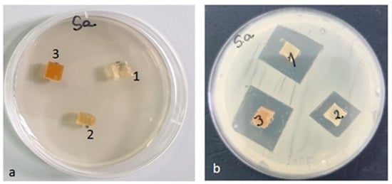 The inoculated Petri dishes were dried for 20 min at 37 °C. Then, with sterile tweezers, the samples were cut in the form of a square of approximately 5 mm and were aseptically taken and applied to the solid culture medium.
