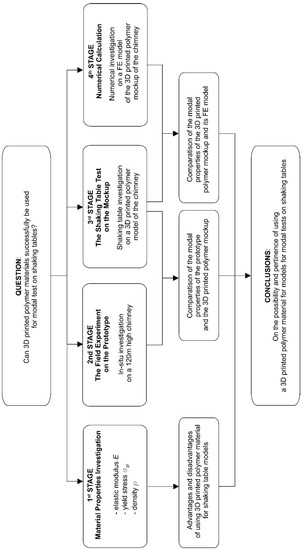 To assess the possibility and the pertinence of using 3D printed polymeric materials for models in modal tests on shaking tables, experimental and numerical works have been performed. The general concept of the research is presented in Figure 1.