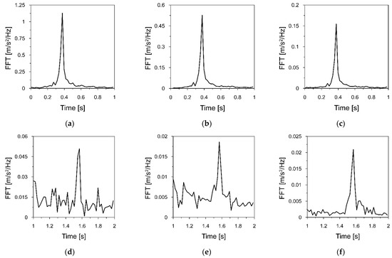 The measuring equipment also contained a signal amplifier, a Siemens LMS SCADAS Mobile recorder, and a laptop that served to preview the recorded vibrations. The frequency range of accelerometers was from 0.15 to 1000 Hz. All sensors were wire connected. The data sampling of the signal was 1024 Hz. The nominal deviation of the sensors and the signal amplifier was +/−5%, and the distortion of the signal for cables and the digital recorder was +/−1.5% and +/−0.05%, respectively.