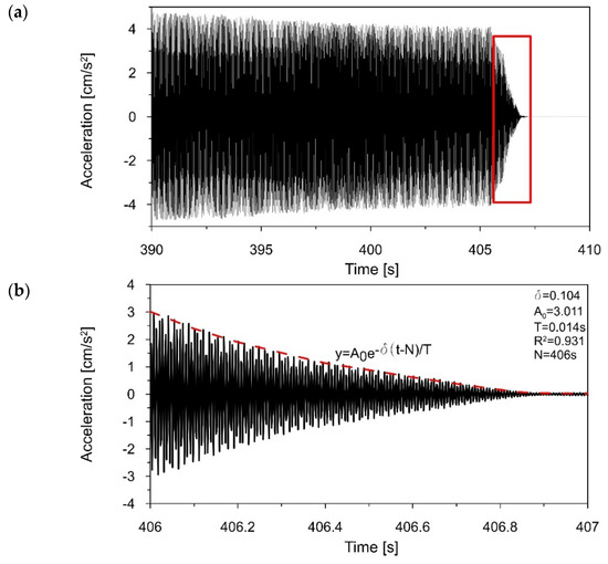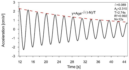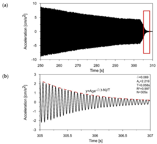 Herein, the obtained damping ratios are worth commenting on. The accurate assessment of damping properties plays a crucial role in the evaluation of the dynamic performance of both the prototype and the model, under any dynamic loading or kinematic excitation. In the case where the material of the prototype and the material of the model are different, the criterion of similarity in terms of damping ratios is equal to Sξ = ξmodel/ξprototype [44]. For example, when the prototype was a three-story frame constructed of steel wide-flange beams and columns, and the model was plastic, fabricated using fused deposition modeling, the authors of the research estimated prototype damping as ξprototype = 0.117% and model damping as ξmodel = 1.5% [45].
