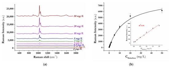 - Chen, X.; Huang, X.; Chen, S.; Ali, S.; Chen, X.; Yuan, L.; Shi, W.; Huang, G. Alkali hydrolysis and Lewis acids assisted enhancement based highly sensitive and quantitative detection of malathion in tea using SERS and multivariate analysis. Sens. Actuators B Chem. 2022, 359, 131584. [Google Scholar] [CrossRef]
