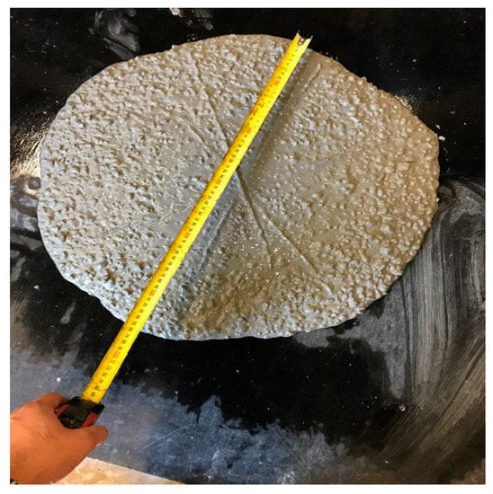 The fresh and hardened properties of RA-SCC, including workability, density, compressive and tensile strength, drying shrinkage and elastic modulus, were investigated. The workability of the SCC mixes was determined by the slump flow test according to AS1012.3.5. The density of hardened SCC was measured as per AS1012.12. Figure 3 illustrates the slump flow test conducted for the SCC samples. Workability is a critical property for SCC products, which is greatly affected by the water absorption of aggregates.