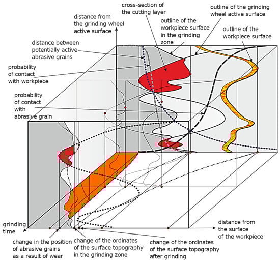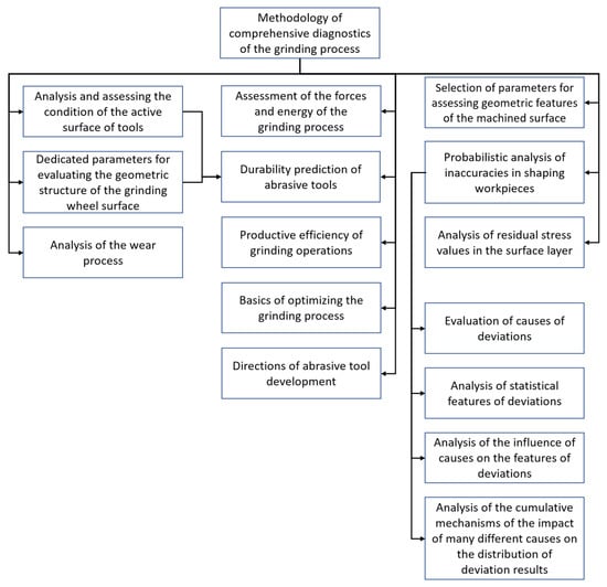 The multitude of factors and phenomena occurring during the grinding process makes the development of comprehensive diagnostic systems a task that requires taking into account many factors with a complex mechanism of cumulating effects of their interactions. In this work, the characteristic features of grinding processes, influencing the resultant values of the process and useful in its diagnostics, are indicated (Figure 1).