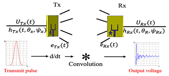 The antenna transfer functions describe a two-dimensional vector with two orthogonal polarization components in the frequency domain. However, the antenna’s transient response becomes more appropriate for the description of impulse systems in the time domain. The antenna’s transient response is affected by time, as well as departure, arrival angles and polarization.