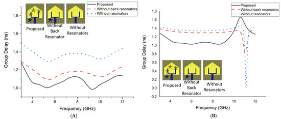 According to Figure 12, the parasitic resonators have a significant improvement in reducing the group delay in both scenarios.