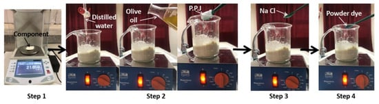 - Step 2: Add distilled water, oil and P.P.J to flour.