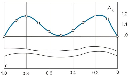 Curve two and its analytical expression (6) can also be the basis for adjustment. The difference between curve two and adjustment curve five in this case can be determined by the adjustment factor λε, which is given by the formula below [38]: