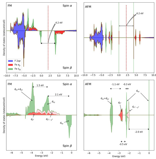 The Jahn–Teller split in KFeF is clearly evident from the DOS (see Figure 4, with the FM and AFM solutions), showing that: