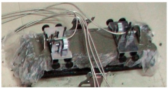 The specimens were designed and tested according to the T/CCPA7-2018(T/CBMF37) [34], (DB13/T 2946-2019) [36] and (GB/T 50082-2009) [37]. The autogenous shrinkage test used the NEL-NES non-contact concrete shrinkage deformation tester. The contact method is used for drying shrinkage, and the sp-540 horizontal concrete shrinkage dilatometer is used. The size of the test block was 100 mm × 100 mm × 515 mm. The test is shown in Figure 6 and Figure 7. During the test, the steel bracket placed in contact with the target was placed in the test mold in advance and buried when the test block was formed. Immediately following the pouring, a layer of film was placed on the surface of the test block to maintain freshness, after which the block was moved into a constant temperature and humidity chamber with a temperature of 20 ± 2 ℃ and a relative humidity of 60 ± 5%. The autogenous shrinking test block shall be kept for 3 hours at constant temperature and humidity, and the data shall be collected every 15 minutes. After the dry shrinkage test block is poured, it is moved to the standard curing room for curing with formwork for 2 days, and then the formwork is removed, and it is moved to the constant temperature and humidity room for testing at the age of 3 days. And its shrinkage was tested at the following intervals: 1 d, 3 d, 7 d, 14 d, 28 d, 42 d and 56 d (calculated from the time when the test piece was moved into the constant temperature and humidity chamber). It was essential to avoid the vibration of the test device during the test.
