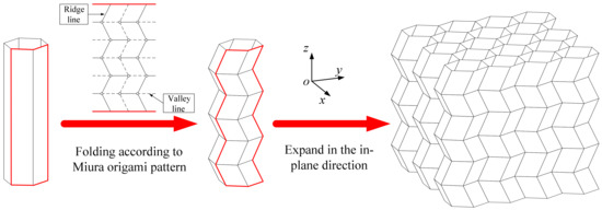 - Schenk, M.; Guest, S.D. Geometry of Miura-folded metamaterials. Proc. Natl. Acad. Sci. USA 2013, 110, 3276–3281. [Google Scholar] [CrossRef]