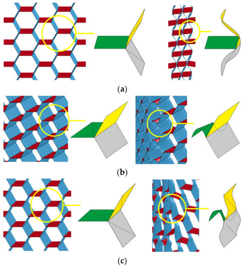 Y-cellular in (a) symmetric deformation pattern; (b) one-sided deformation pattern; and (c) compound deformation pattern.