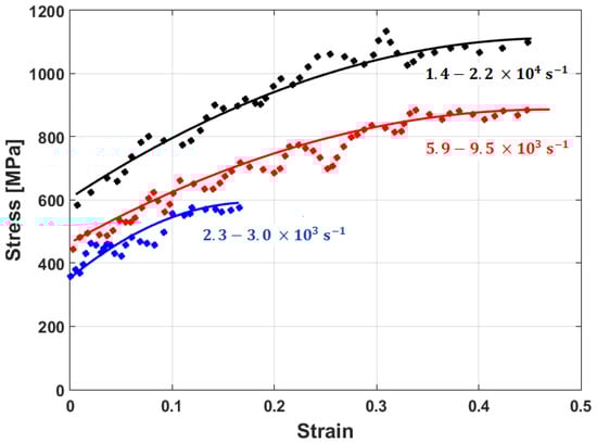 Constants , and can be determined using algorithms that are based on non-linear least square methods. Good fitting between experimental stresses and predicted stresses are obtained using the modified JC method that was presented by Couque et al. [71] for the prediction of flow stress in nickel at different strain rates, and the home temperature can be obtained (cf. Figure 12).