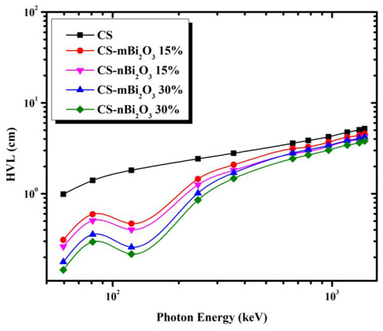 Half value layer (HVL) for the prepared mortars as a function of photon energy.
