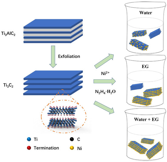The synthesis procedures of sandwich-like Ni/Ti3C2 catalysts. Copyright 2021, Elsevier. Reproduced with permission from [106].