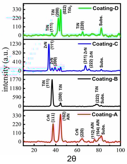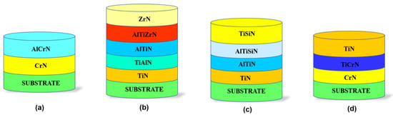 - Sampath Kumar, T.; Balasivanandha Prabu, S.; Manivasagam, G. Metallurgical Characteristics of TiAlN/AlCrN Coating Synthesized by the PVD Process on a Cutting Insert. J. Mater. Eng. Perform. 2014, 23, 2877–2884. [Google Scholar] [CrossRef]