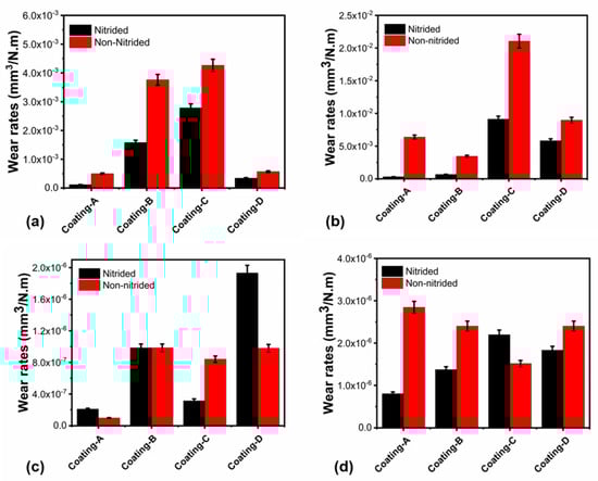 Effect of AISI H13 Steel Substrate Nitriding on AlCrN, ZrN, TiSiN, and TiCrN Multilayer PVD Coatings Wear and Friction Behaviors at a Different Temperature Level