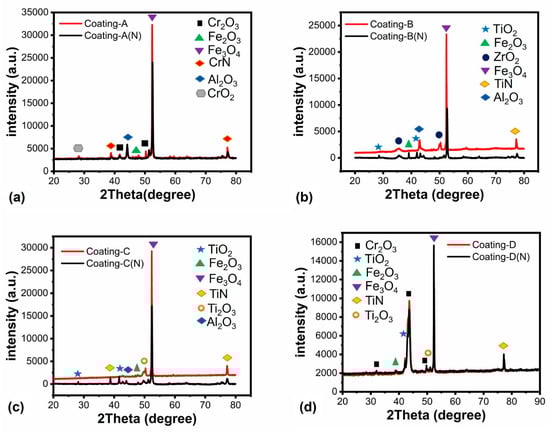 - Ge, P.L.; Bao, M.D.; Zhang, H.J.; You, K.; Liu, X.P. Effect of Plasma Nitriding on Adhesion Strength of CrTiAlN Coatings on H13 Steels by Closed Field Unbalanced Magnetron Sputter Ion Plating. Surf. Coat. Technol. 2013, 229, 146–150. [Google Scholar] [CrossRef]