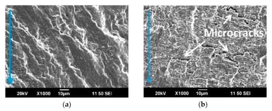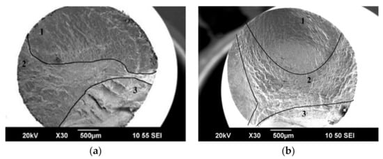 Therefore, the propagation of the cracks through the center of the sample is slower in the case of R = −1, and the fatigue endurance limit can be higher when compared to R = 0.1.