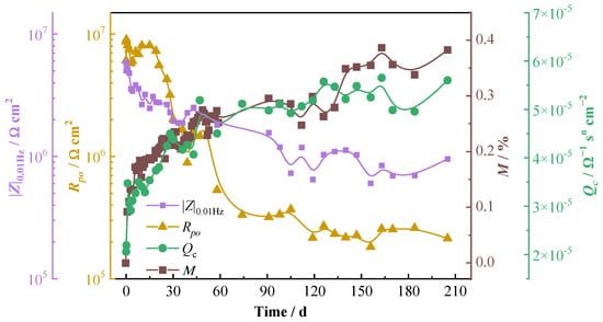 - Bing, L.; Xu, A.; Liang, Y.; Huang, Z.; Qiao, Z.; Xia, D.; Zhang, S.; Li, Z.; Zhang, F.; Chen, P. Evaluation on protective performance of organic coatings by analyzing the change rate of phase angle at high frequency. Int. J. Electrochem. Sci. 2012, 7, 8859–8868. [Google Scholar]