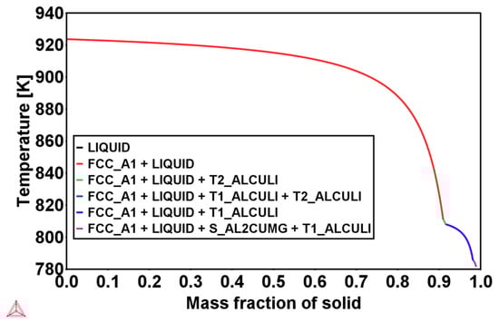 Scheil calculation using the database TTAl8 in Thermo-Calc software for Al-2.63Cu-1.56Li-0.28Mg.