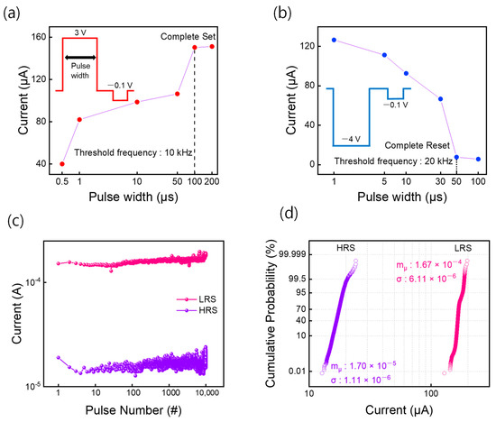 - Sun, C.; Lu, S.M.; Jin, F.; Mo, W.Q.; Song, J.L.; Dong, K.F. The Resistive Switching Characteristics of TiN/HfO2/Ag RRAM Devices with Bidirectional Current Compliance. J. Electron. Mater. 2019, 48, 2992–2999. [Google Scholar] [CrossRef]