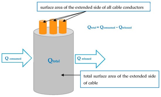 In order to explain the physical phenomena associated with cable fire, the conservation of energy law [16] can be interpreted in relation to combustion, which is the rapid oxidation reaction of a substance called fuel, combined with the release of energy in the form of heat. Geometrically, a piece of cable can be considered as a circular or elliptical cylinder. During the combustion processes, the total energy (heat) released is equal to the difference between the heat consumed by the cable and the heat released in the combustion zone (Figure 1). Total heat release is a function of effective combustion surface area [17].