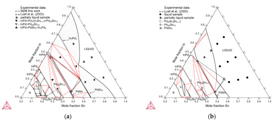 - Luef, C.; Flandorfer, H.; Ipser, H. Enthalpies of mixing of liquid alloys in the In–Pd–Sn system and the limiting binary systems. Thermochim. Acta 2004, 417, 47–57. [Google Scholar] [CrossRef]