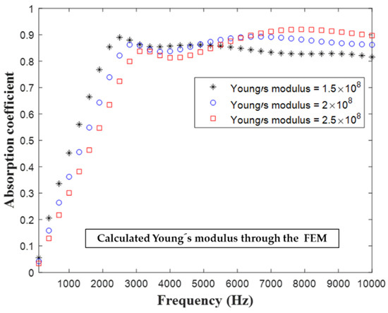Influence of the real part of Young’s modulus (Unit: Pa) of the substrate of the developed metastructure on the structure’s sound absorption coefficient.