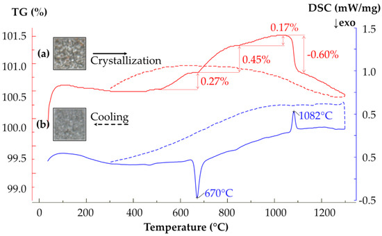Between 1055 and 1115 °C, a mass loss of 0.60% is observed, which corresponds to the endothermic effect with a maximum at 1081 °C.