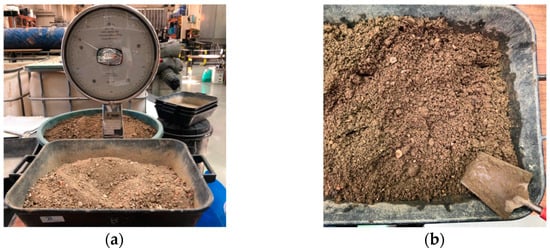 The proportions of the constituents of the C&D material were initially determined on the basis of the European Standard EN 933-11:2011 [34], as shown in Table 1. However, taking into account that, according to this standard, the material passing the 4 mm sieve is not considered, an alternative classification method is proposed to account for the substantial percentage of particles of this particular C&D material falling below 4 mm. Given that the manual sorting of particles passing the 4 mm sieve is virtually impossible, they were listed in Table 1 as “unsorted particles”. Assuming that the unsorted particles consist mainly of soil, this recycled material is mainly composed of soil, with some unbound and hydraulically bound aggregates and concrete/mortar products.
