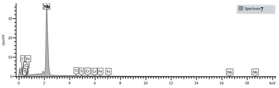 Surface distribution of elements such as Fe, Cr, Ni, Mn, Nb, and C in the area of niobium carbides present in the alloy with 9.2% Nb content shown in Figure 10.