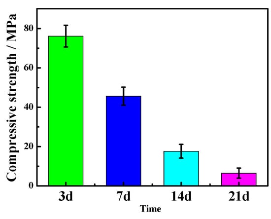 Compressive strength of the MOC samples cured naturally for different time in an indoor environment.