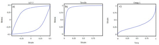 The data from 12 experiments are available for optimization. They are tensile, seven different low-cycle fatigue (LCF), and four different creep tests (Figure 1). Only one stabilized hysteresis loop is used from the LCF experiments.