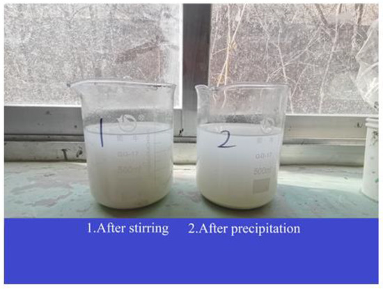 Figure 1 depicts the preparation process of diatomite. Diatom ore was transformed into white powder diatomite through the process of crushing, separation, calcination, grinding and sieving at Linjiang Shengmai diatomite Functional materials co., Ltd. Figure 2 illustrates the dissolution of the prepared diatomite in water. Diatomite was not easily soluble in water because it precipitated after being evenly stirred and left to stand for 10 min. Figure 3 reveals the microstructure of diatomite by scanning electron microscopy. The tiny particles of diatomite are shaped like sunflower disks and have numerous pores arranged in a regular pattern on their surface. X-ray fluorescence spectrometer was utilized to examine the chemical composition of the diatomite (Table 1 and Figure 4). Diatomite consists primarily of SiO2 and small amounts of Al2O3, Fe2O3, K2O, CaO, TiO2, MgO, and others. Table 2 lists the main physical parameters of diatomite.